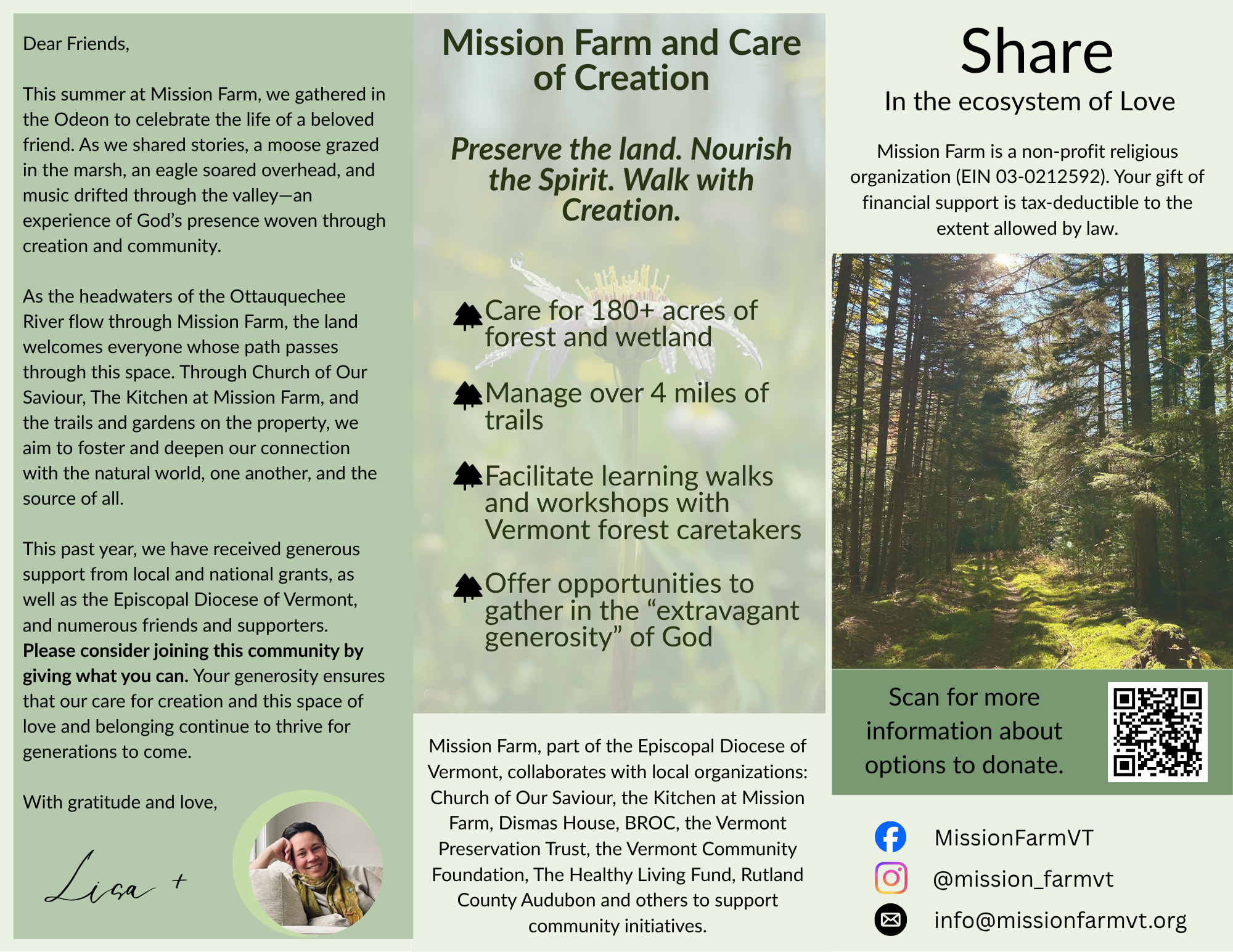 We gather every first and third Sunday at Mission Farm. In the summer and fall, we can most often be found at the Odeon or in the orchard. In the winter, we gather in the historic Church of Our Saviour.