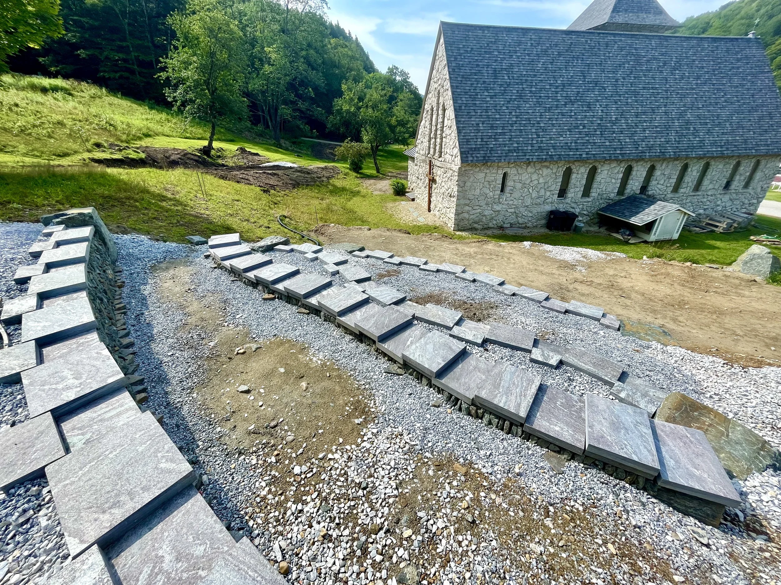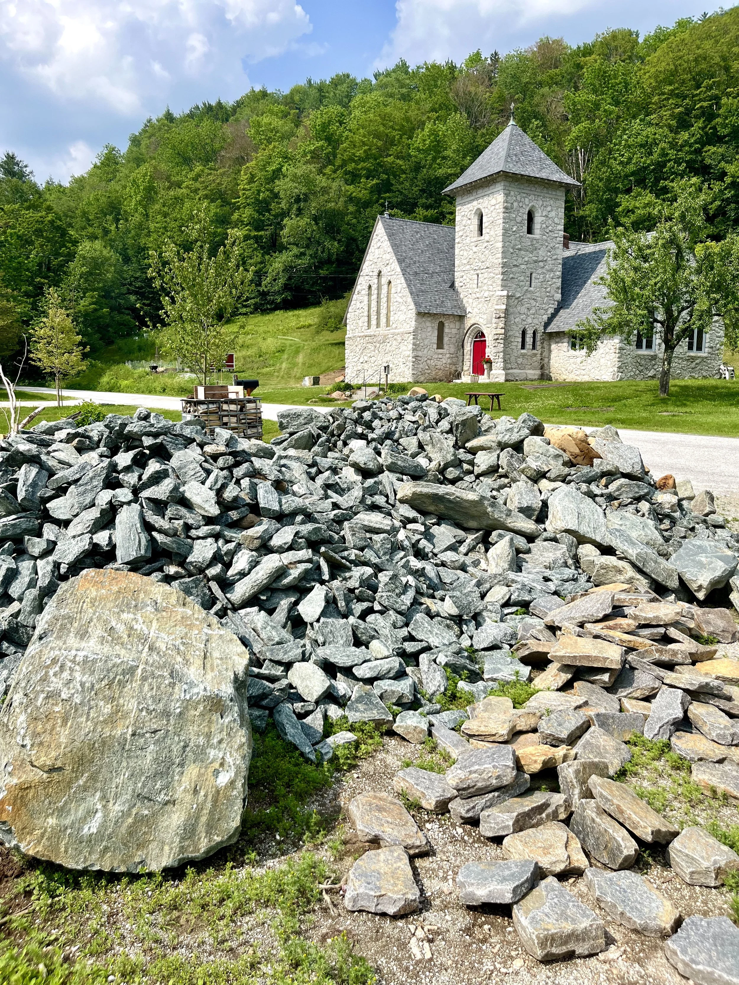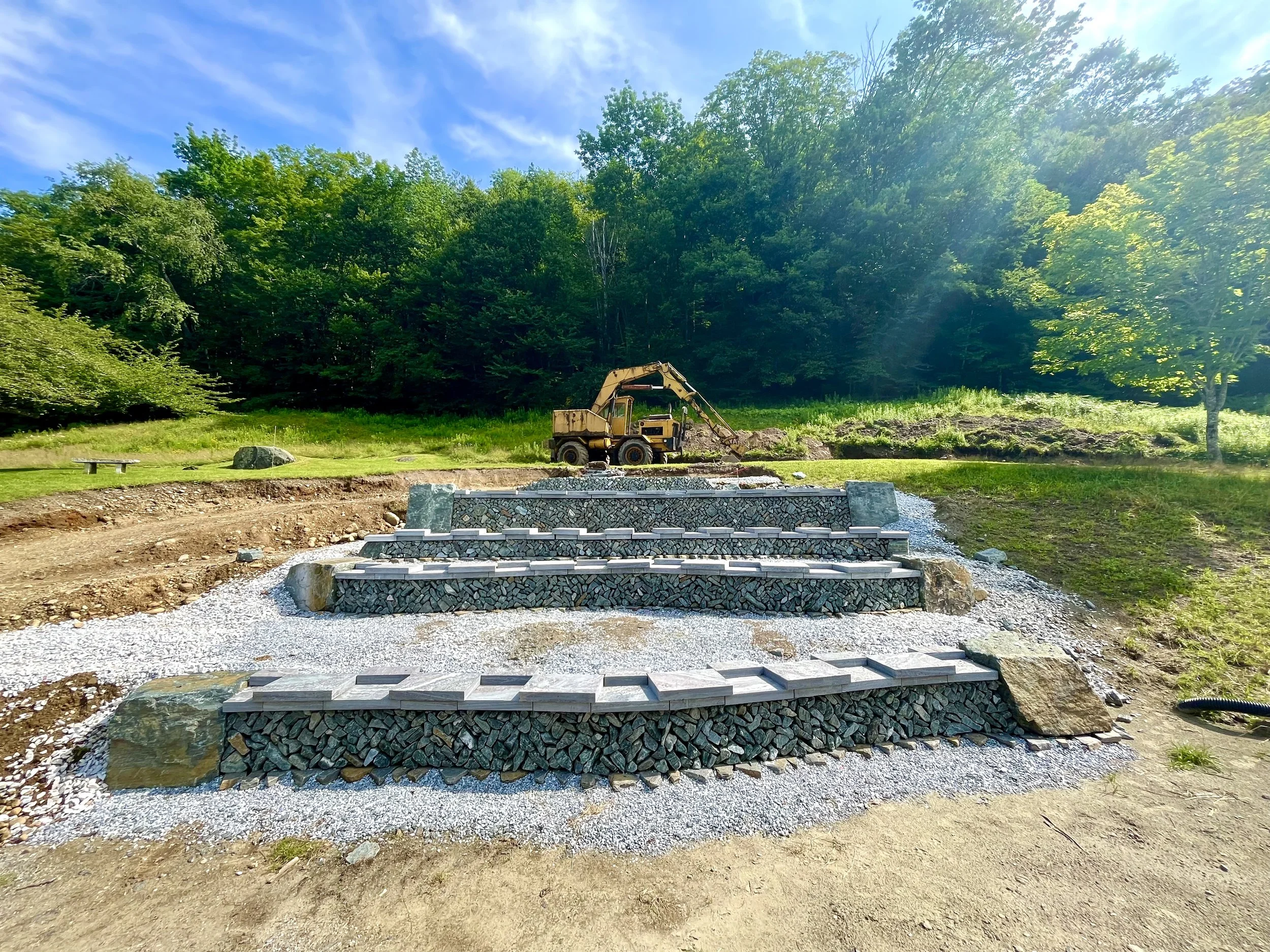 Designed by stone craftsman Dan Snow of Dummerston, Vermont, dry-laid stone construction is employed to devise this site-specific work of environmental art. Dan combines master craftsman skills with sculptural artistry to bring new geologic forms into the natural world.